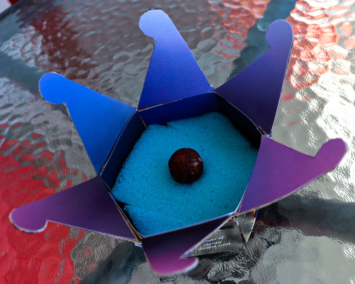 Mars-suklaa tuote kuvitteelliselle yritykselle ja pakkausuunnittelu kuvitteelliselle tuotteelle. Teemana on vaihtoehtoinen todellisuus avaruusajassa 2484 ja tuote on marsilaisen kolonian luksustuote, jota on saatavilla pieni rajoitettu erä kerrallaan. Mars-suklaapallossa on 4 kerrosta planeetan rakenteen mukaan ja ne on selostettu makuineen tuotteen kyljessä. Tuote, Mars-suklaapallo on ensimmäinen herkku osasta planeetta herkut -tuotesarjaa. Jokainen pakkaus sisältää yhden herkun joka sulaa hitaasti suussa ja tuo uuden maun kielelle jokaisen kerroksen myötä.